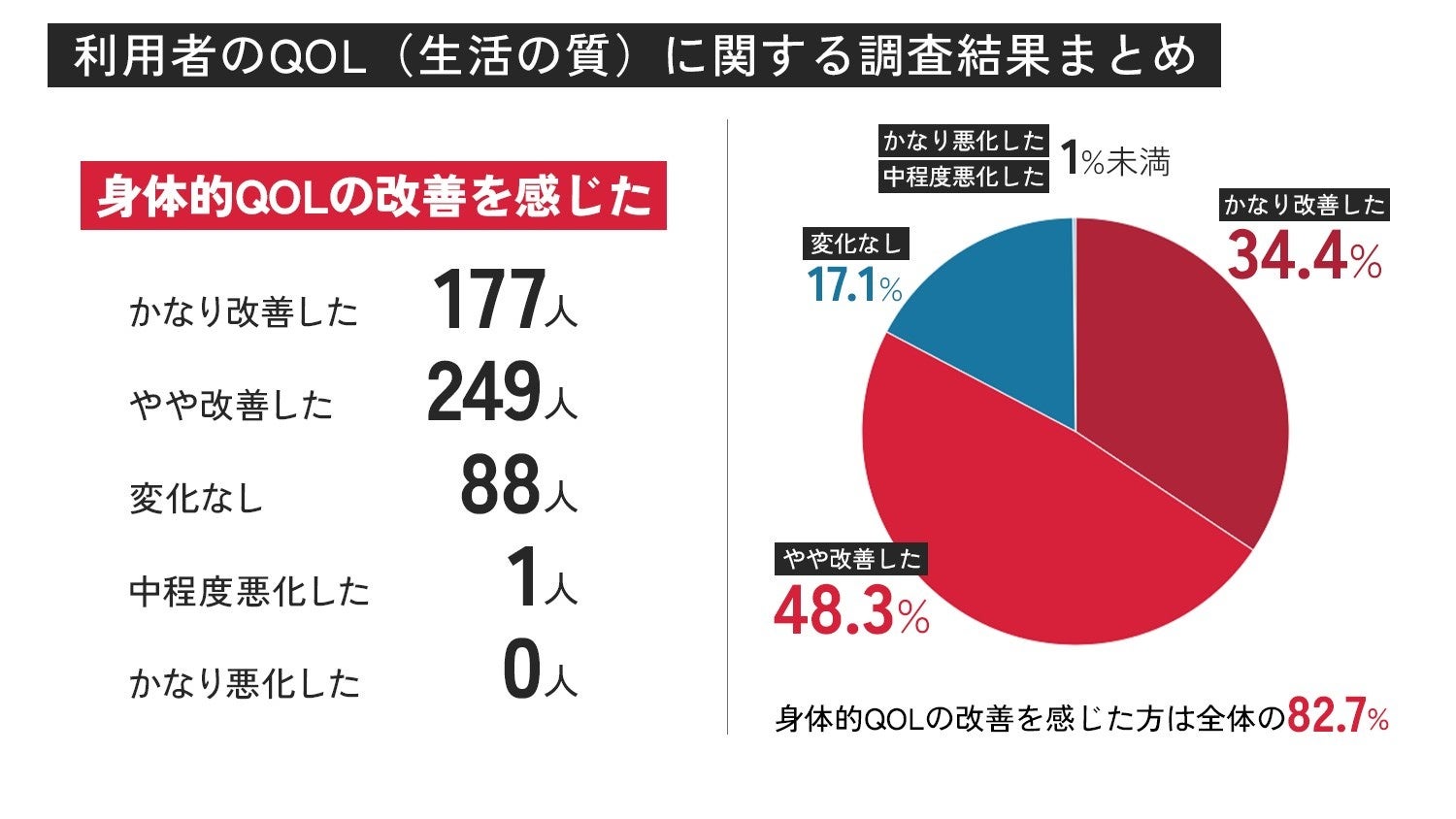 ・身体的QOL(生活の質)の改善を感じた利用者: 82.7%
