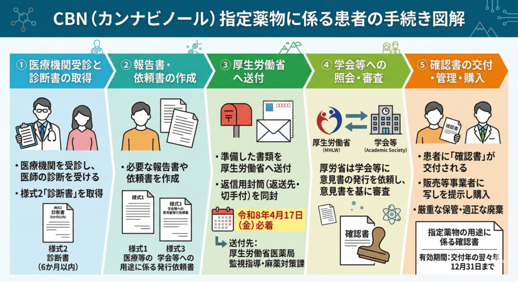 継続使用には、厚生労働省への申請と医師の診断が必要です。